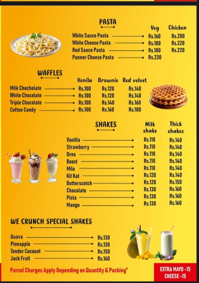 But the journey doesn't end there; We Crunch also features mouthwatering desserts that elevate your culinary experience. The Sizzling Brownie With Icecream, priced at ₹130, is a must-try—imagine warm, fudgy brownie paired with cold, creamy vanilla ice cream, creating a spectacular contrast that’s simply irresistible. Pair this with a Cup Cake With Icecream for a truly decadent treat at just ₹130, and you'll find your sweet tooth utterly satisfied.